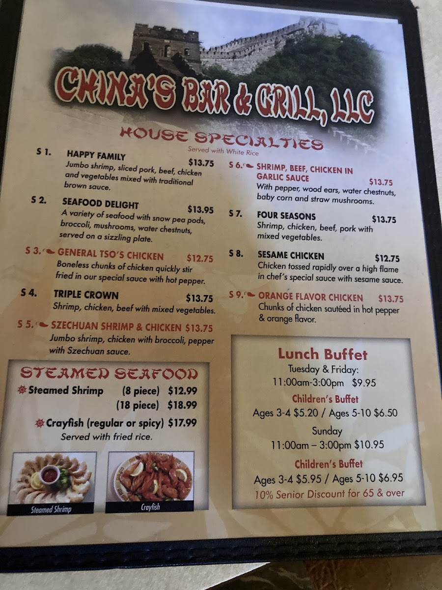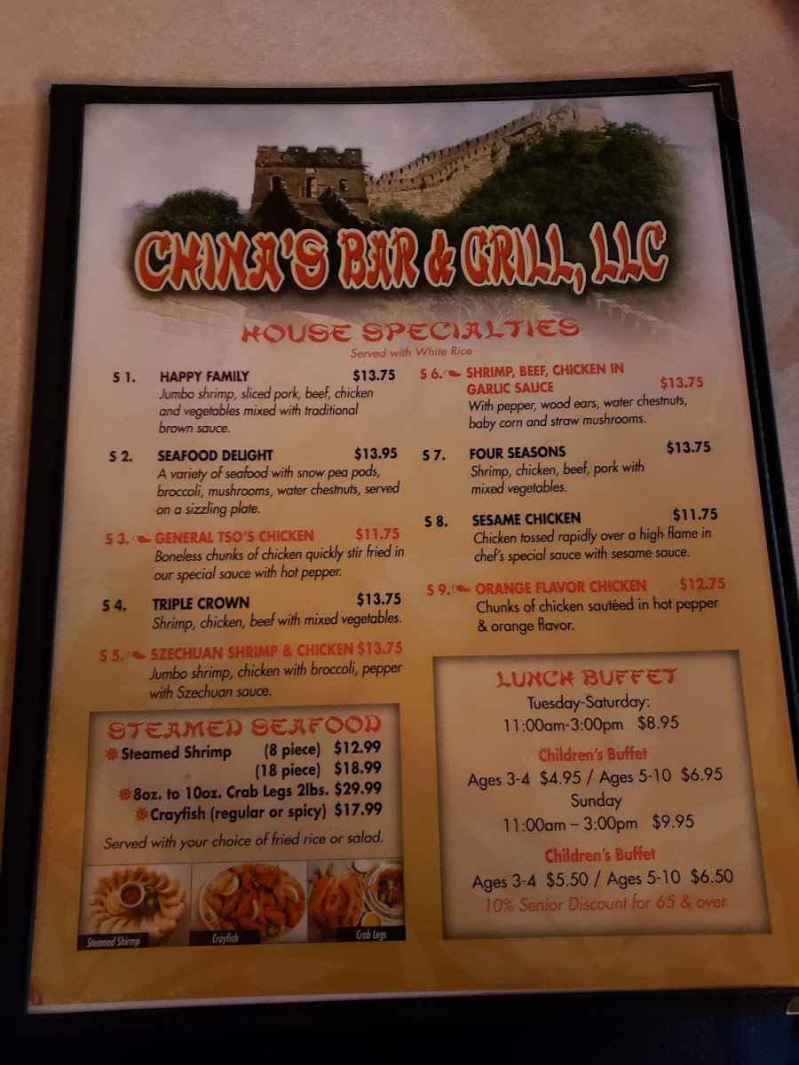 Guests rave about the welcoming atmosphere and the staff's friendly demeanor, making each visit feel like a homecoming. With its rich variety and great value, China's Bar & Grill LLC. promises an unforgettable dining experience that will keep you coming back for more.
